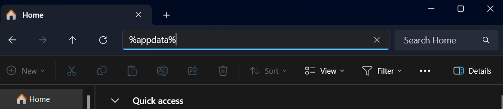 - Now you must be in the folder C:\Users\< Your User Name >\AppData\Roaming