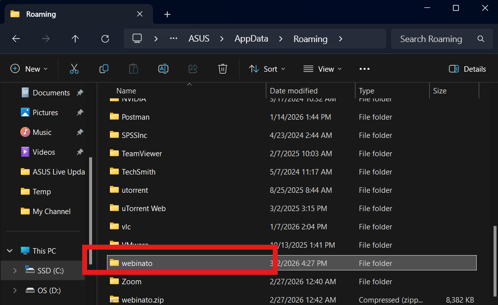 - Find and open the "Webinato" folder (you must be in the folder to follow the next step)